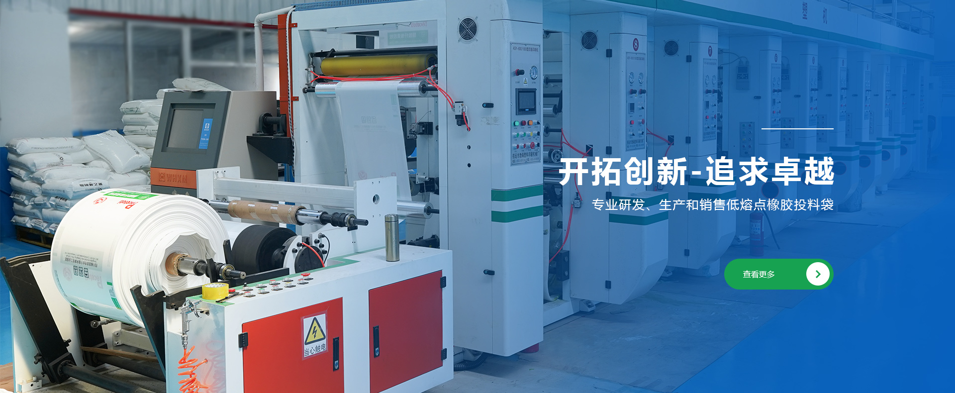 公司創建于1998年,是專業研發、生產和銷售低熔點橡膠投料袋、EVA閥口袋、LDPE多層閥口袋、EVA/LDPE低熔點膜、橡膠包裝膜、FFS重包裝袋、普通塑料包裝袋、牛皮紙閥口袋等產品的綜合包裝類企業